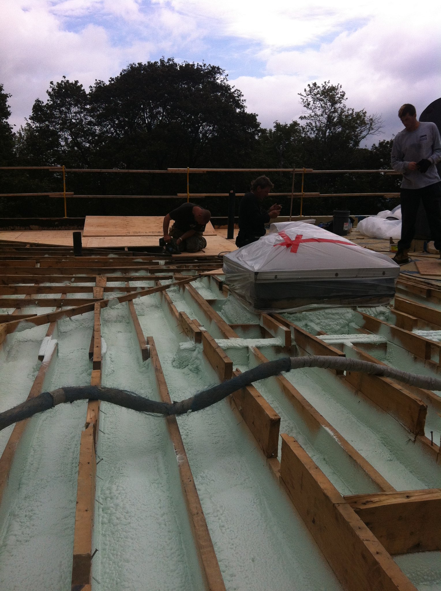 En hiver, la différence de température entre l’entretoit et l’extérieur provoque de la condensation et du givre, pouvant même entraîner une accumulation de glace sur le toit.